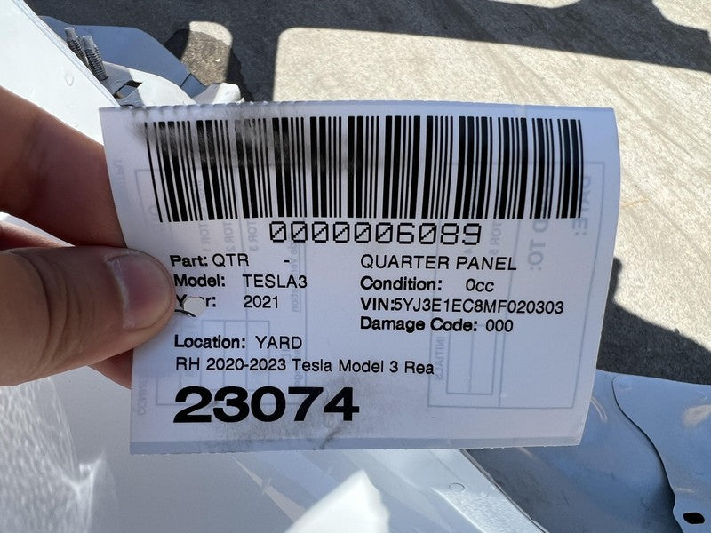 ⭕ 21-23 Tesla Model 3 Rear Right Quarter Panel Structural Frame Cut White PPSW