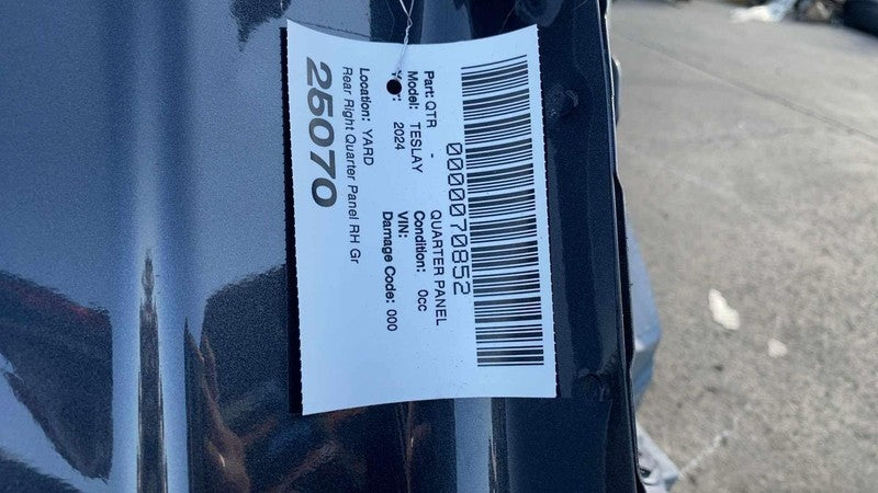 ⭕ 2020-2024 Tesla Model Y Rear Right Quarter Panel Structural Cutout Gray - PN01