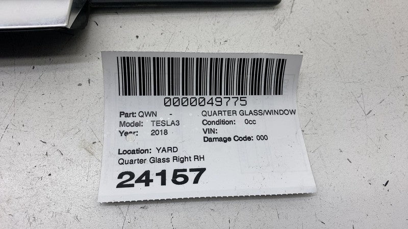 2017-2020 Tesla Model 3 M3 Rear Passenger Side Quarter Fixed Window Glass Right